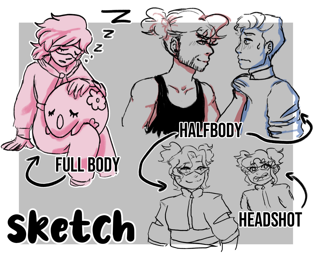 full body - $50/$60 shaded*+ add character - $15 per char, $30 for full body
